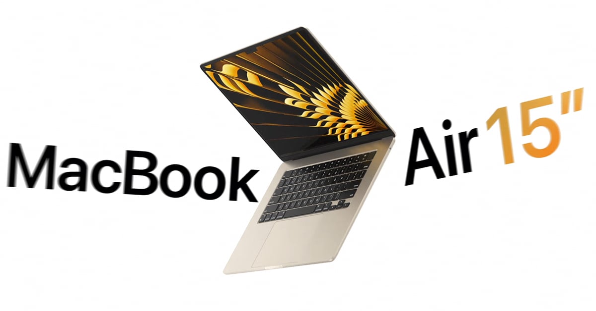 สำหรับ MacBook Air รุ่นนี้บางเพียง 11.5 มิลลิเมตร น้ำหนัก 3.3 ปอนด์ (ประมาณ 1.5 กิโลกรัม) เป็นแล็ปทอปขนาด 15 นิ้วที่บางที่สุดในโลกชองแอปเปิล มีทั้งหมด 4 สี ได้แก่ Silver, Space Gray, Midnight และ Starlight โดยจอภาพเป็น Liquid Retina ขนาด 15.3 นิ้ว มาพร้อมชิป M2 ซึ่งเร็วกว่า MacBook Air ที่ใช้ชิปเซต Intel ถึง 12 เท่า อายุการใช้งานของแบตเตอรี่ 18 ชั่วโมง ในราคาเริ่มต้นที่ 47,900 บาท